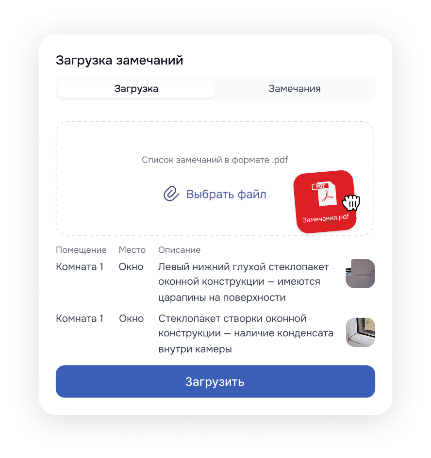 Распознавание и загрузка замечаний из акта осмотра стороннего эксперта